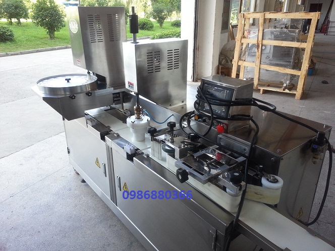 MÁY ĐÓNG CHIẾT DÁN NẮP LY CHÁO TỰ ĐỘNG
